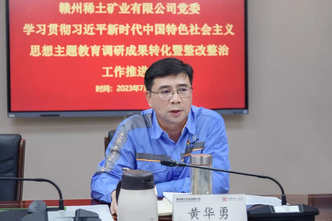 7月27日,赣州稀土矿业有限公司党委召开主题教育调研成果转化暨整改整治工作推进会,公司党委书记、董事长黄华勇主持会议并讲话,集团公司党委第三巡回指导组成员黄宗东、杜凯到会指导,公司党委副书记、总经理叶春林及公司其他领导班子成员参加会议。