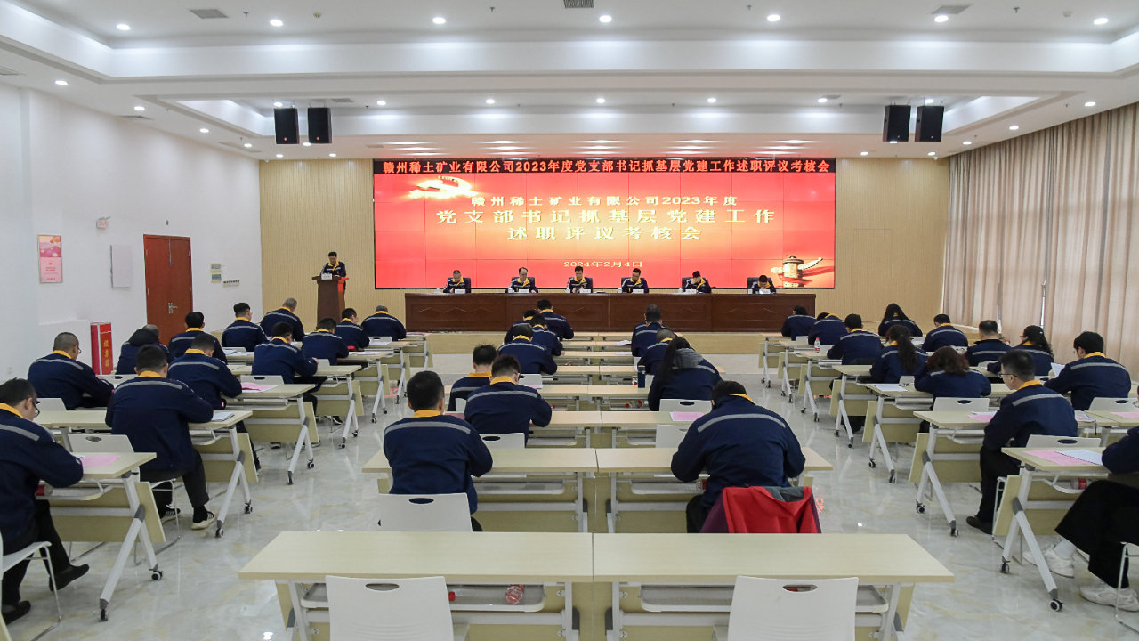 2月4日,赣州稀土矿业有限公司召开2023年度党支部书记抓基层党建工作述职评议考核会。公司党委书记、董事长黄华勇出席会议并讲话,党委副书记、总经理叶春林及公司领导李程亮、何巧燕、钟瑞林、何结锋参加会议,会议由李程亮主持。