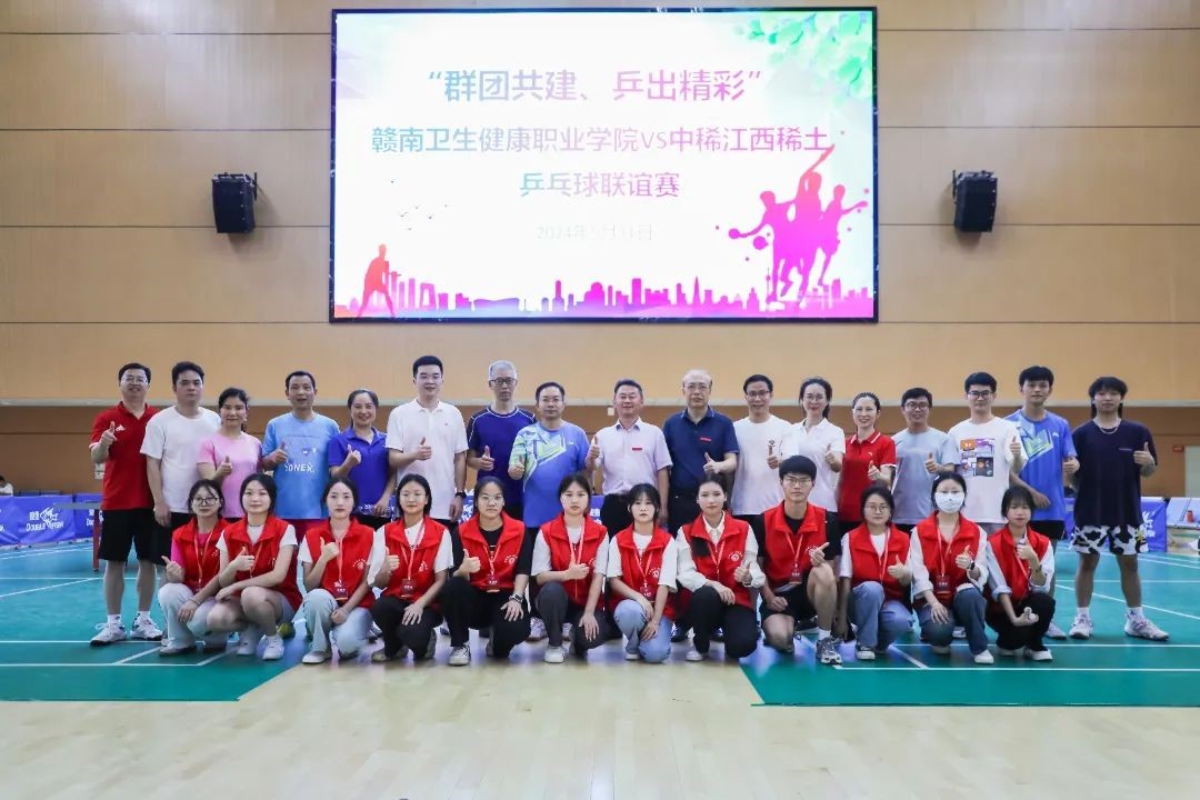 5月31日,必赢3003no1线路检测中心(以下简称江西稀土)与赣南卫生健康职业学院(以下简称赣南卫职院)联合举办以“群团共建 ‘乒’出精彩”为主题的乒乓球团体联谊赛。