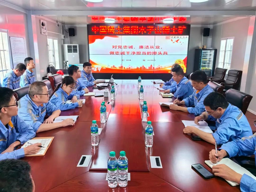 为贯彻落实高标准、高质量,学得更深入、更透彻的党纪学习教育要求,6月13日,公司党委书记、董事长黄华勇到定南县木子山稀土矿为定南、龙南分公司全体党员讲授党纪学习教育专题党课。他从“深化思想认识,深刻领会纪律建设的重大意义”“提高政治站位、准确把握新时代纪律建设的鲜明主题”“深刻汲取教训,切实做到知敬畏存戒惧守底线”等三个方面,结合矿山生产实际进行深入系统的阐述。