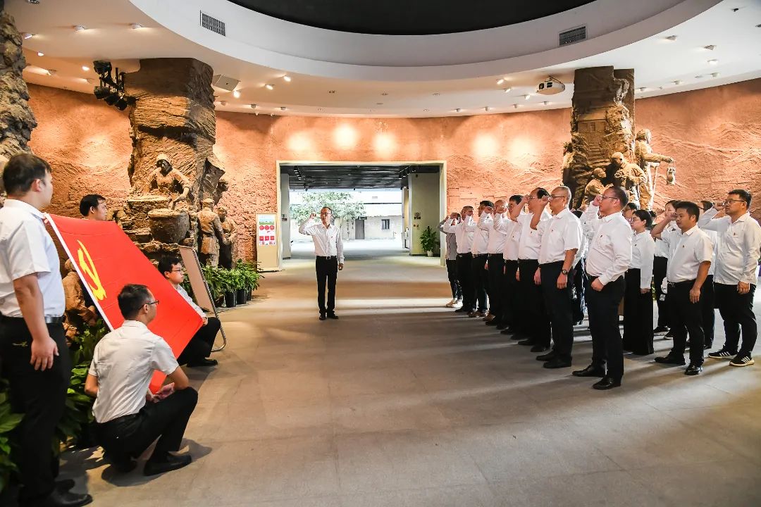 本次党建联学共建以参观红色教育基地、座谈交流等方式开展。联学共建团队来到“全国爱国主义教育示范基地”——兴国将军园,参观将军馆和苏区干部好作风陈列馆。通过一段段震撼的英雄事迹,一张张珍贵的历史照片,一个个生动的历史故事,一件件宝贵的革命文物,深刻感悟革命先辈们为建立新中国抛头颅、洒热血的革命精神和伟大爱国主义情怀;进入苏区干部好作风陈列馆后,通过认真观看陈展照片、历史文稿和革命文物,全体党员了解了苏区干部好作风的精神内涵,更加深切感受到了苏区干部始终与人民群众艰苦与共、共同奋斗、不讲特殊的优良作风,对苏区干部有了更深的敬意。随后,在鲜红的党旗下,参加活动的全体党员郑重举起右手庄严宣誓,重温入党誓词,字字铿锵,激昂回荡的宣誓声催人奋进、鼓舞人心。大家纷纷表示作为新时代的党员干部,要向革命先辈学习,就要学习他们为革命舍生忘死、无私奉献的精神,把自己的主要精力投入到本职工作上,立足本职工作,兢兢业业,无私奉献,争创一流!