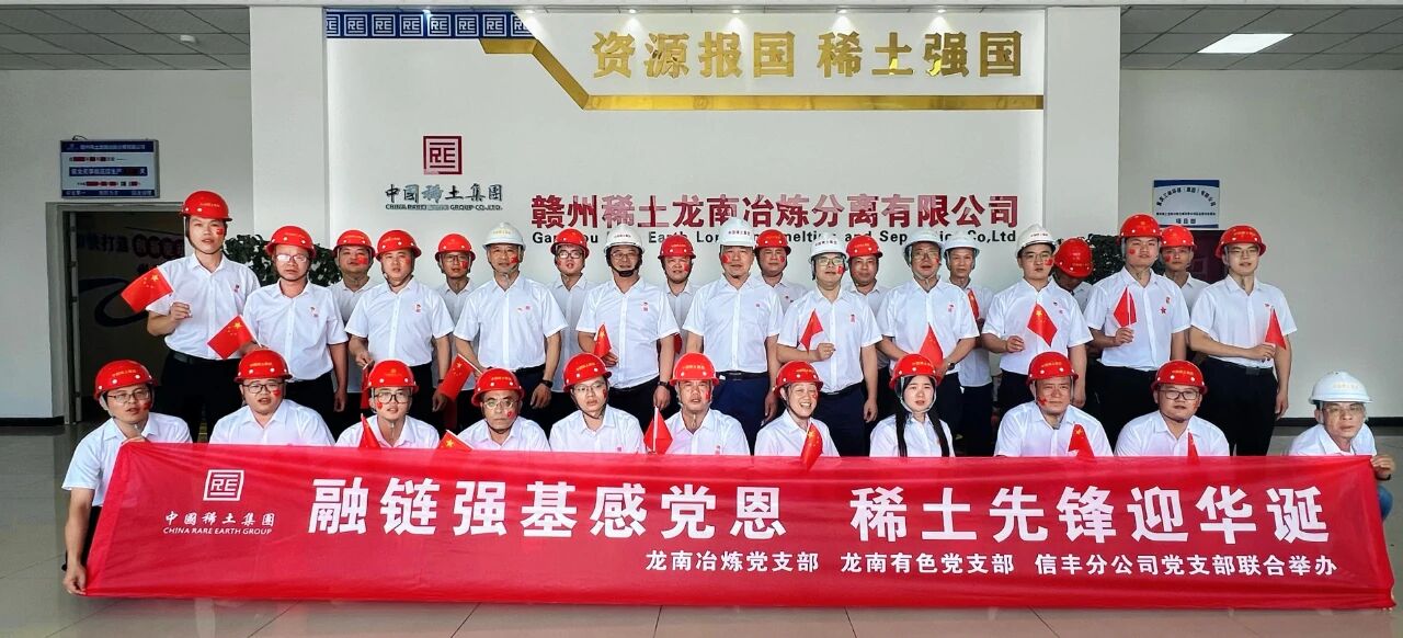 在中华人民共和国成立76周年之际,公司所属分公司、冶炼企业党支部,于龙南冶炼厂区联合开展“融链强基感党恩,稀土先锋迎华诞”主题党日活动。活动以党建为“红色引擎”,驱动产业链上下游协同,为筑牢国家稀土产业安全韧性、提升战略资源发展质效注入红色动能,彰显国企服务国家战略的使命担当。